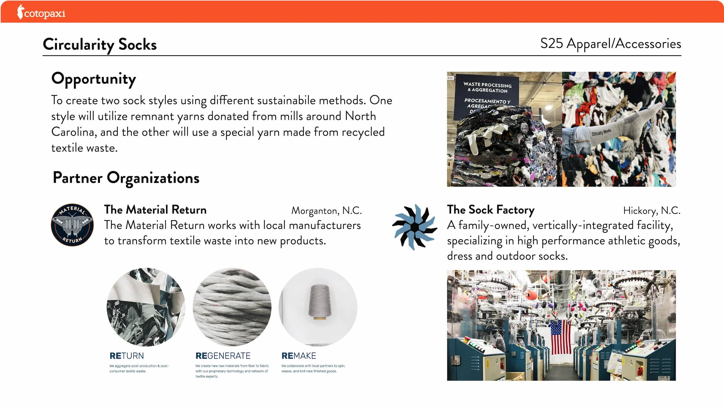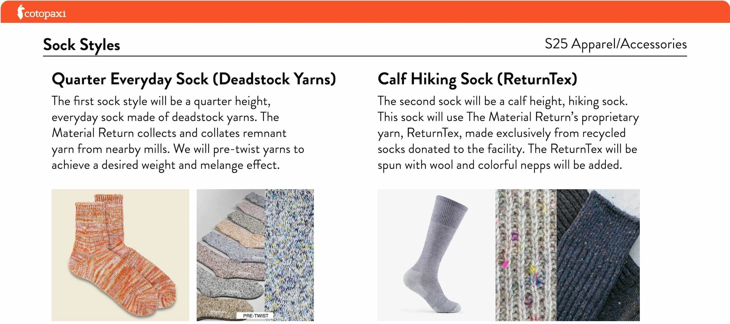 Circularity SocksHiking socks made from regenerated textile waste and merino wool. Produced in partnership with Material Return in Morganton, NC and launched in S25.
